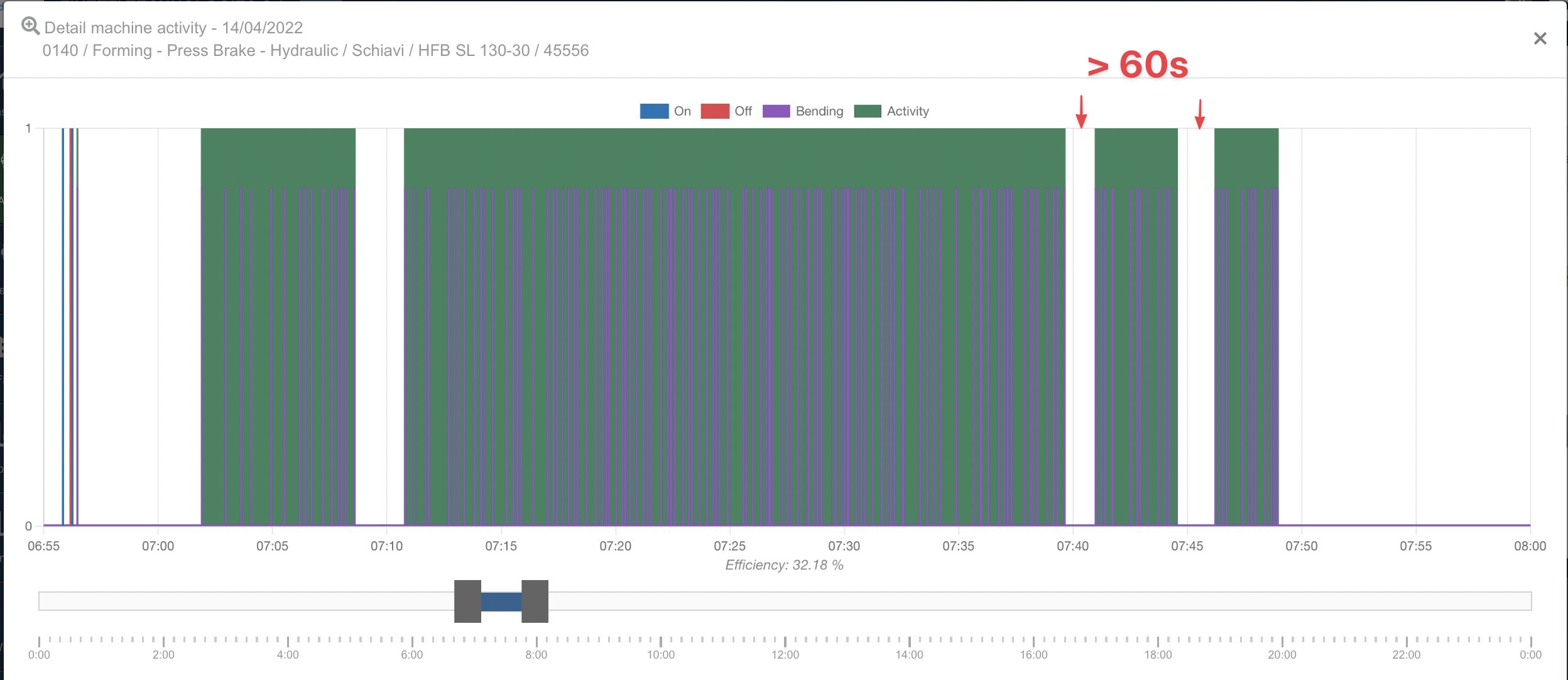 It is now possible to set allowed idling time differently for each machine. By default this time is set to 60s and periods of machine inactivity less then this value are still consider as worked time. On some machines doing specific jobs it may be required to allow more time for manipulation during the job. This new setting will allow to set machine utilisation calculation more realistically.