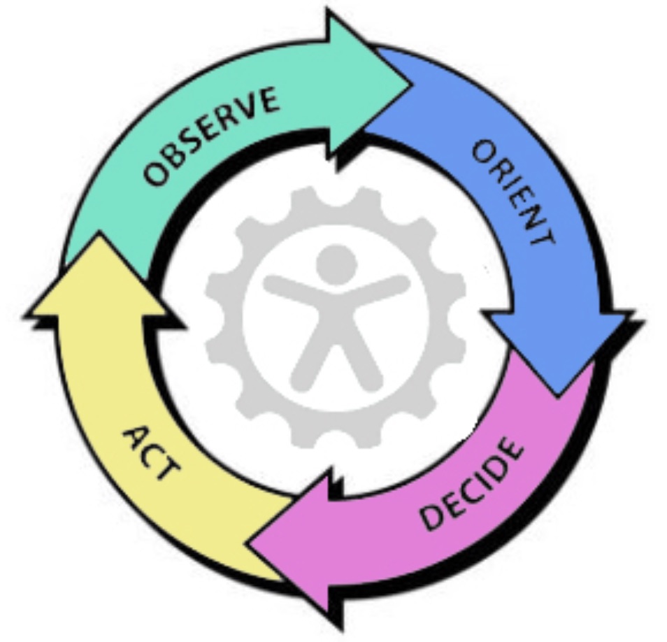 OODA sottolinea la necessità di osservare dati ed eventi, determinarne il significato, filtrare il rumore, riorientarsi man mano che arrivano nuove informazioni e soprattutto agire, il tutto in un ciclo continuo.