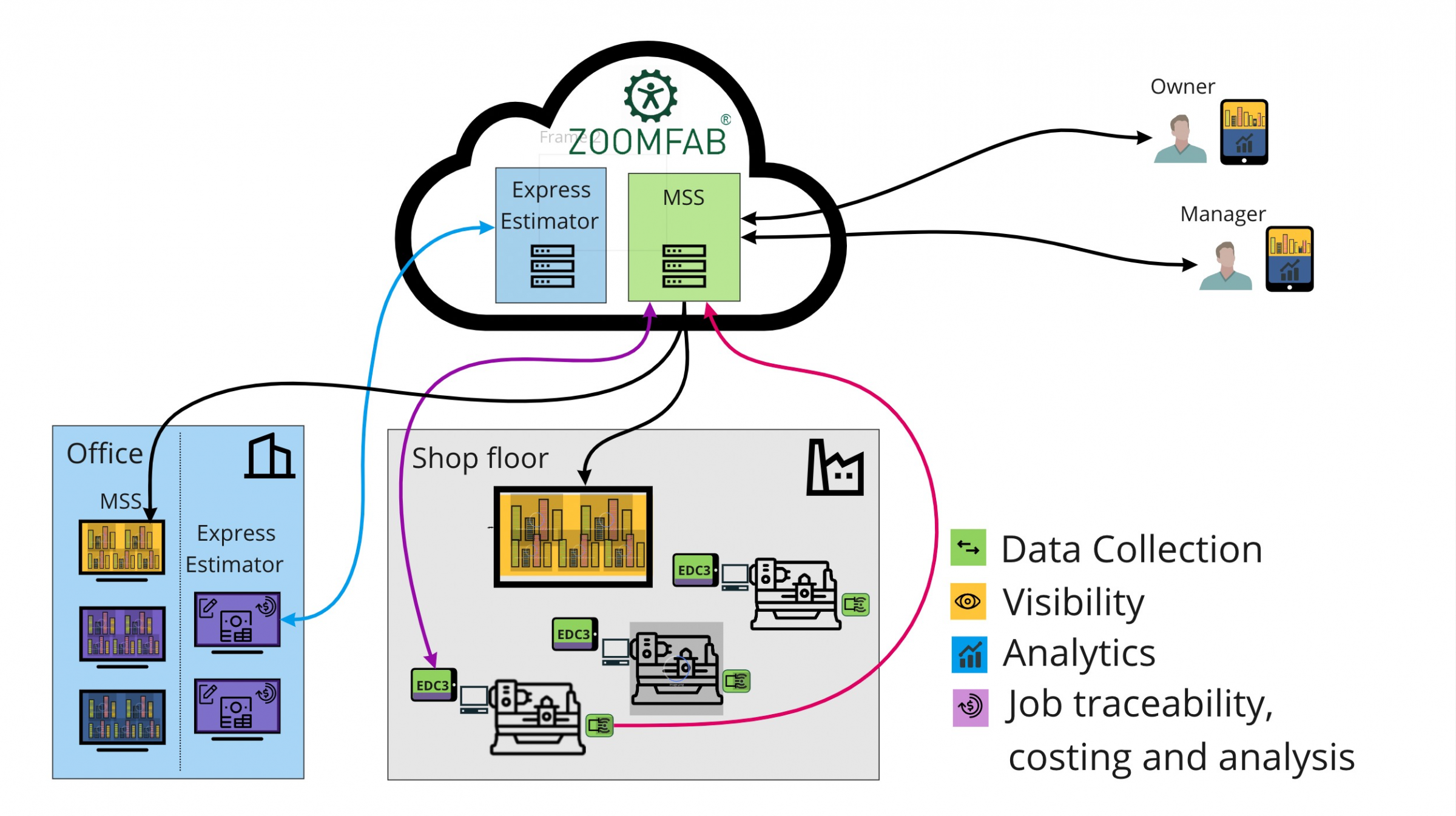 ZOOMFAB MSS™ is a Manufacturing Supervisory System (MSS) used by manufacturers to improve their shop-floor organization and increase productivity. Good organization and increase in productivity have a direct effect on reducing production times and improving lead times.